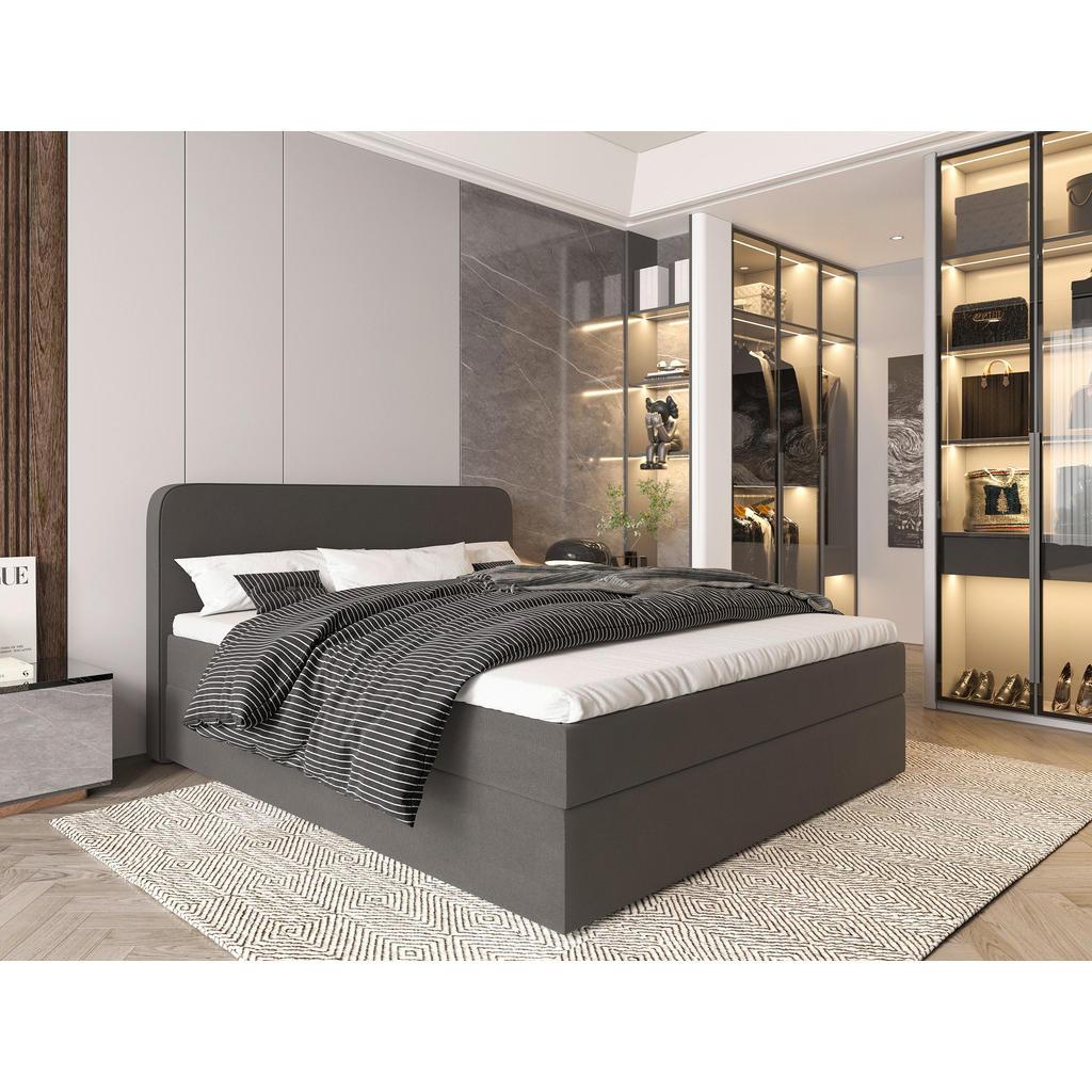 Mid.you Boxbett , Anthrazit , Textil , Birke , Hartholz , H3 , 180x200 cm , Bettkasten, Lattenrost, gepolstertes Kopfteil, Federkernmatratze ,