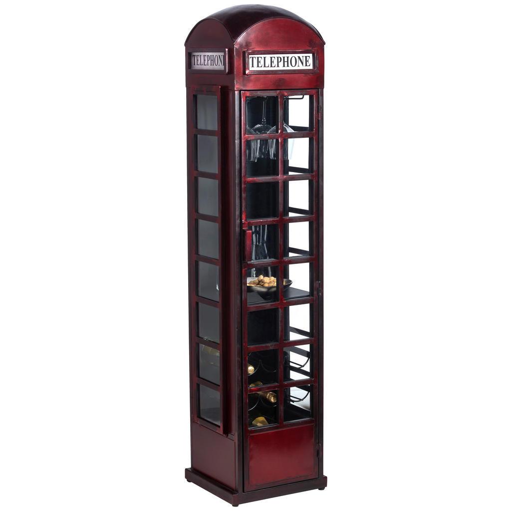 Ambia Home Vitrine , Rot, Schwarz , Metall , Vintage , 1 Fächer , 40x173x39 cm , stehend , Wohnzimmer, Wohnwände, Vitrinen