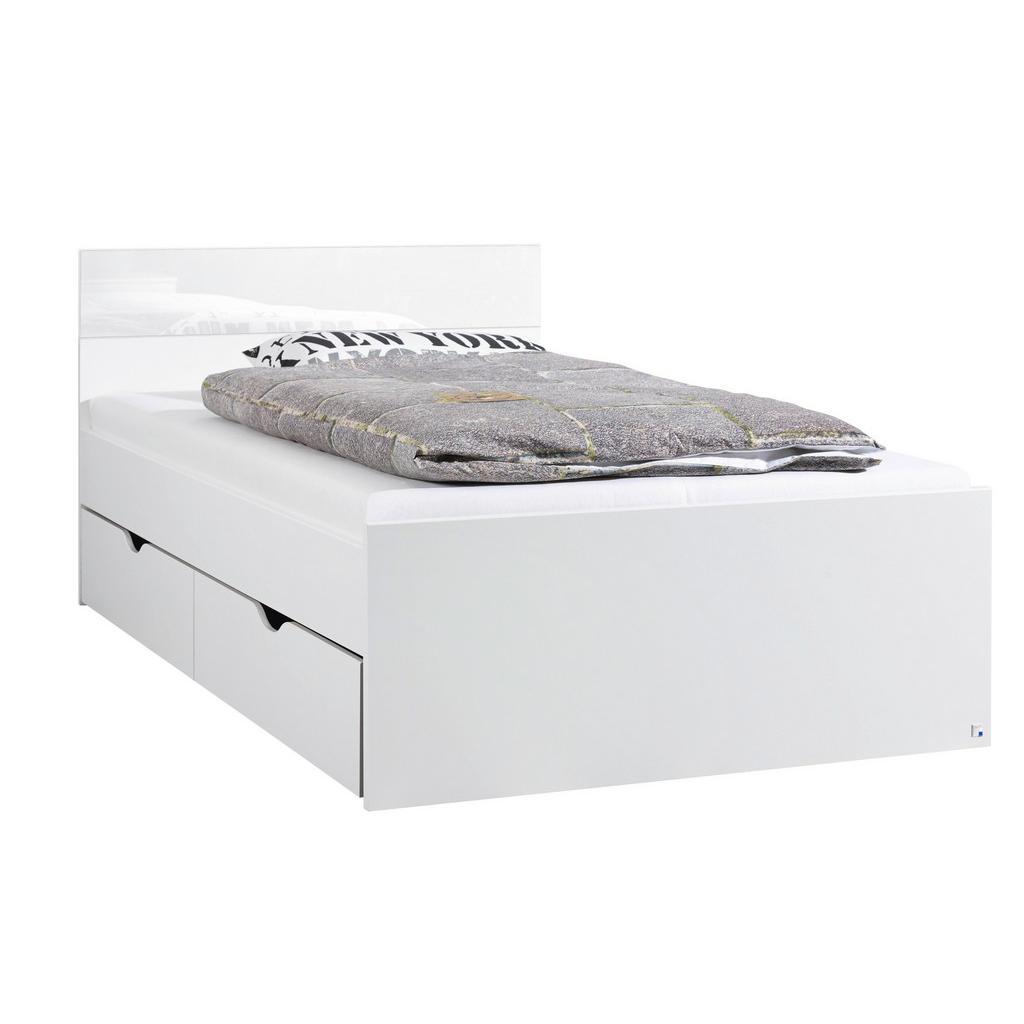 Xora Stauraumbett , Weiss , Glas, Holzwerkstoff , 2 Schublade(n) Schubladen , 120x200 cm , Blauer Engel, BQ - Bündnis für Qualität, Made in Germany , in verschiedenen Holzdekoren erhältlich, mit Schubkästen, In verschiedenen Grössen erhältlich , Schl...