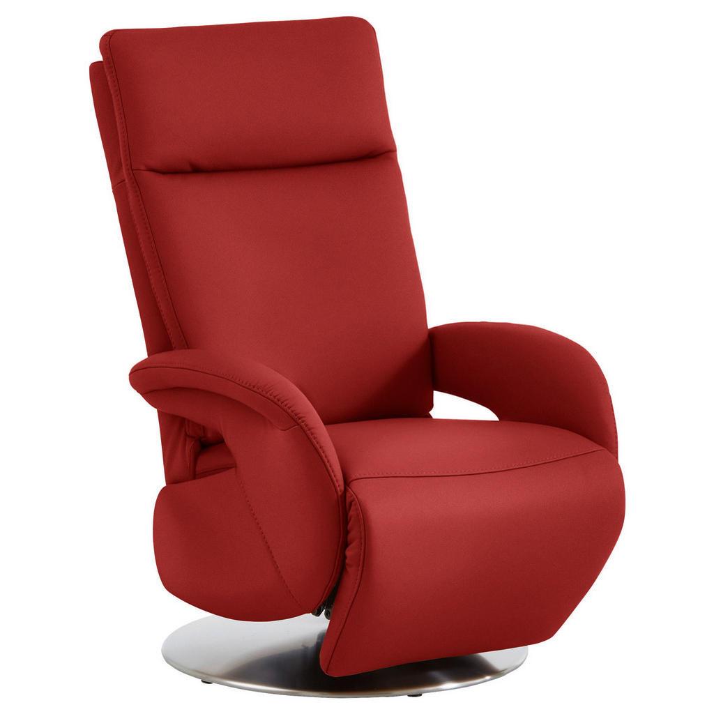Cantus Relaxsessel , Rot , Leder , Echtleder , Color-Finish-Leder , 70x108x80 cm , Goldenes M , Fussart wählbar, Lederauswahl, Stoffauswahl, Relaxfunktion, Sitzfläche 360° drehbar, inklusive Armlehnen , Wohnzimmer, Sessel, Relaxsessel