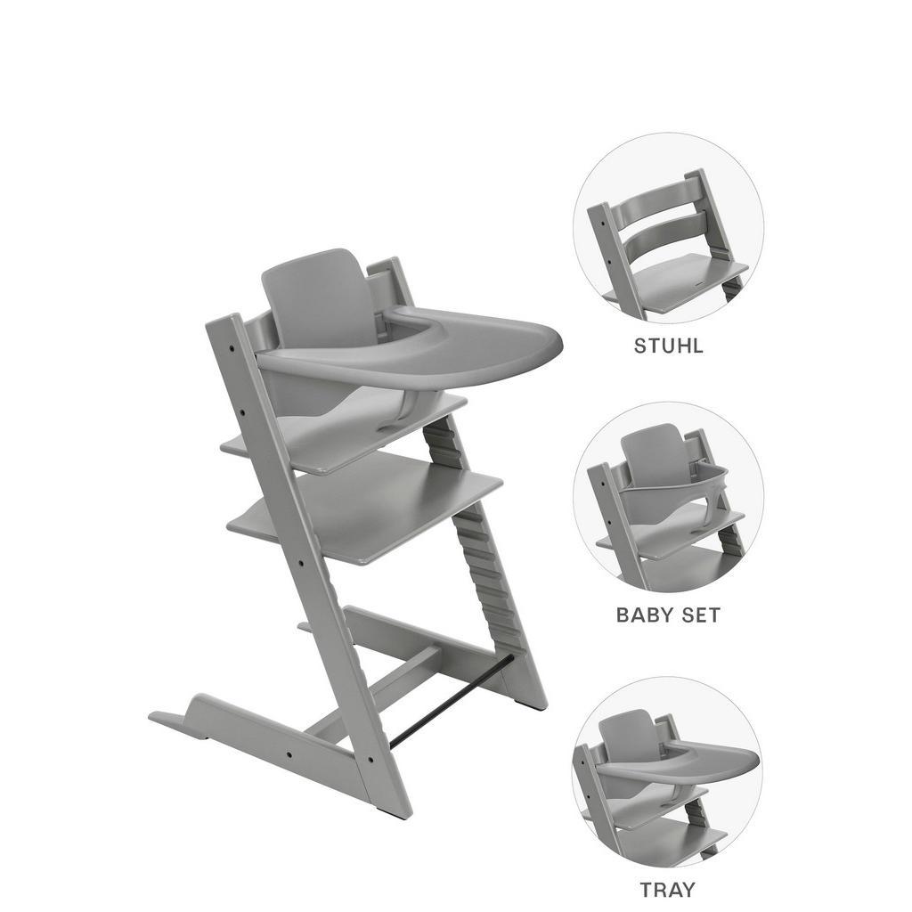 Stokke Hochstuhl-Set , Hellgrau , Holz , Buche , 46x79x49 cm , Fussstütze verstellbar, Sitzfläche verstellbar, höhenverstellbar, Tablett, Snacktablett , Baby- und Kindermöbel, Babyzimmer, Hochstühle