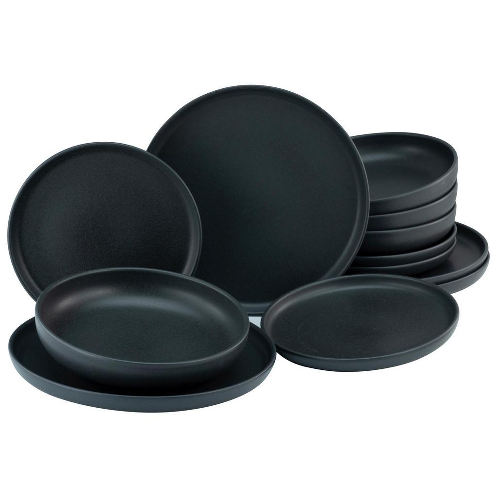 Creatable Tafelservice , Schwarz , Keramik , 12-teilig , Uni , 36.5x34.5x36.5 cm , Made in Europe , Geschirr, Geschirr-Sets, Tafelservice