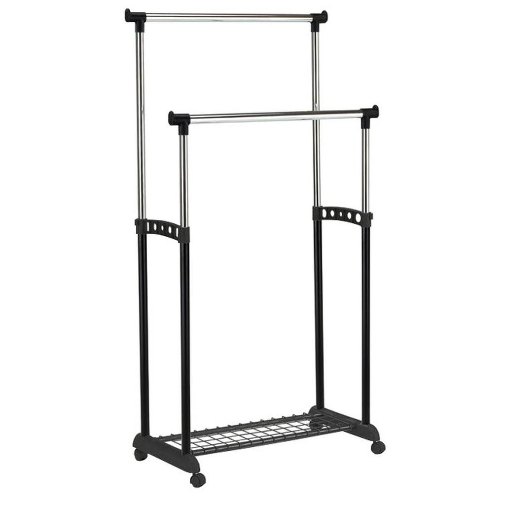 Boxxx Kleiderwagen , Schwarz, Chromfarben , Metall, Kunststoff , 85x100-178x43 cm , Schuhablage, standfeste Füsse , Schlafzimmer, Kleiderständer