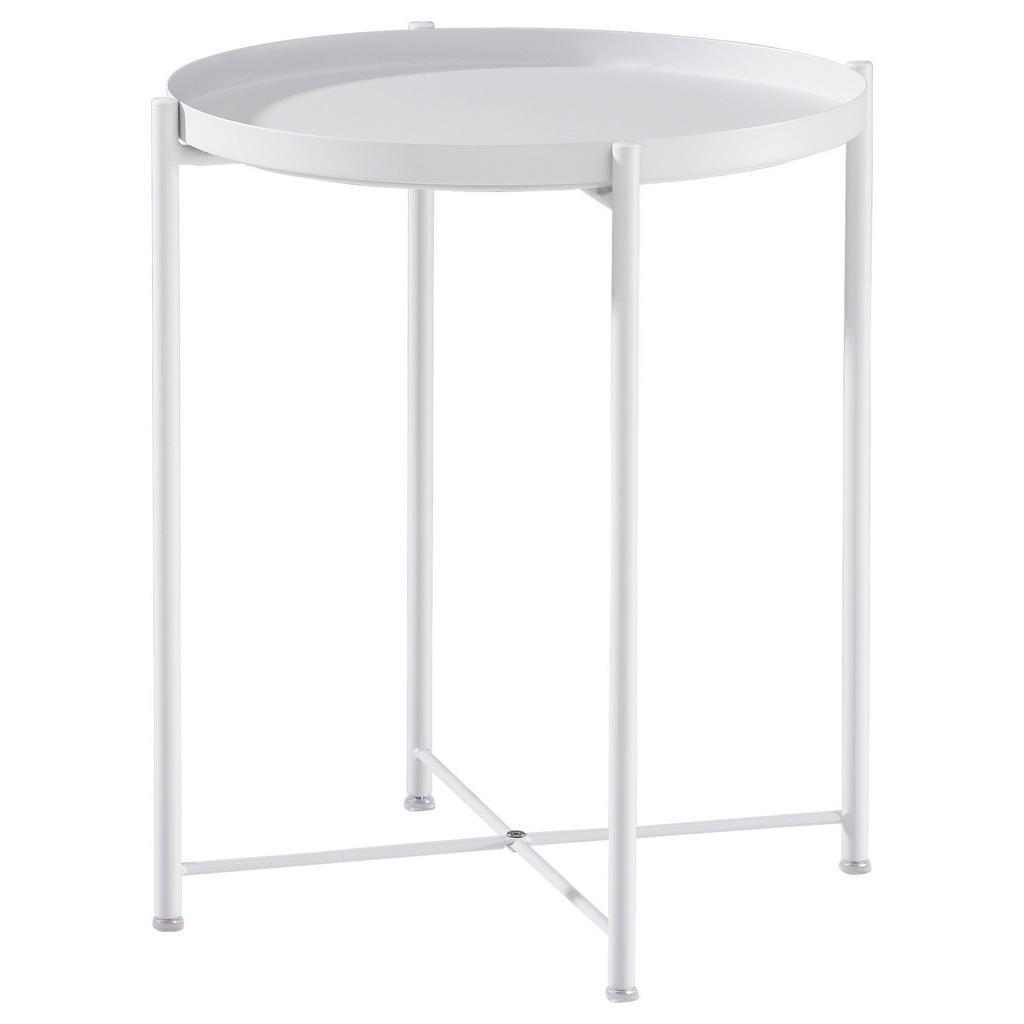 Carryhome Beistelltisch , Weiss , Metall , rund , rund , 47.5x53x47.5 cm , abnehmbares Tablett , Wohnzimmer, Wohnzimmertische, Beistelltische, Beistelltische rund